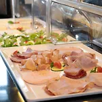 Burada kontinental kahvaltı her sabah sunulur. Europese lezzetli yemekleri sunan Gourmetrestaurant "Stiar" otelden sadece 400 metre uzaklıkta bulunmaktadır.